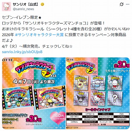 2026年4月2日 午後4:00のサンリオ公式のXにてこのような告知がありました!